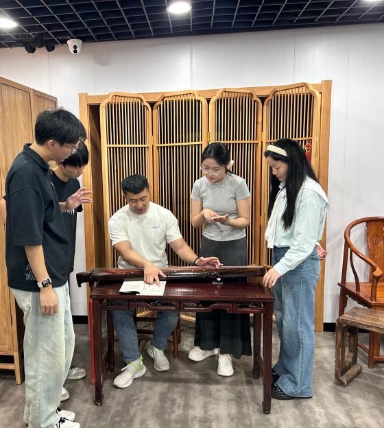 这次旅行将教学班直接从校园转移到了遗产的工作室和舞台。在古朴典雅的环境中,师生们首先拜访了李树国先生,黑龙江省古琴艺术非物质传承人。李老师不仅是技艺传承人,更是龙江古琴文化历史的“活字典”。他对古琴词的历史渊源、制作工艺、独特的记谱等进行了详细的讲解,并现场演奏了《流水》、《三朵梅花》等经典曲目。师生们在悠扬的琴声和深远的意境中,感受到了“清、柔、淡、远”的深邃境界和其中所蕴含的哲学思想。刘海鹰副校长与李那老师深入探讨了古琴在当代教育中的传承与变革。