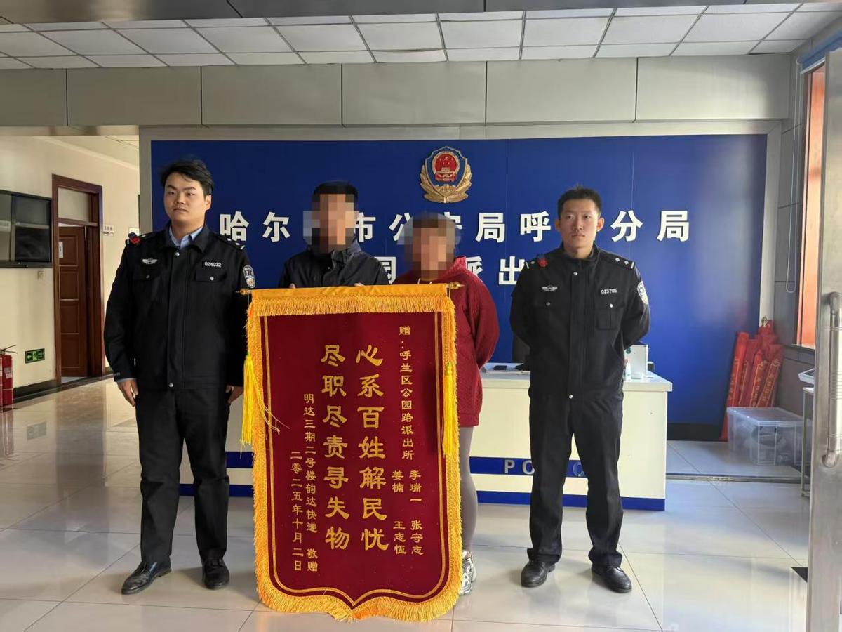 公园路派出所民警江南、李瑞义、王志恒、警长张守志在附近巡逻场景。他们先安抚了快运站的负责人,然后又了解了现场情况。四人分工明确,进行了细致的调查。核实取件信息后,该居民很快联系了误拿包裹的民警。对方发现拿错包裹,立即带着包裹赶回客栈。最后快递员犯了一个错误,没有完全退回。邮局负责人特意定制了一条写着“寻找失物、关爱群众、解决群众关切”的横幅,送到了公园路派出所。他握着民警的手,语重心长地说:“感谢你们及时出手相救,不仅帮我们解决了问题,也维护了快件站在居民心中的可靠性,非常感谢!”